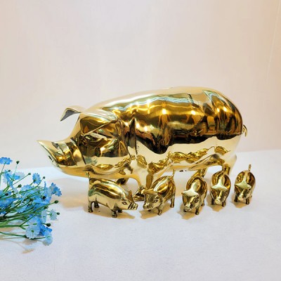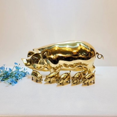 돈과 복을 가져다 주는 황동 돼지장식품입니다.