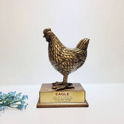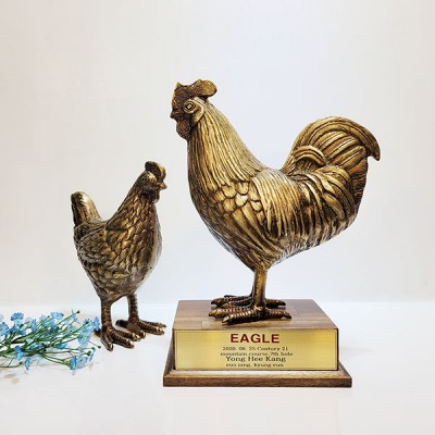 풍수인테리어소품으로 인기있는 청동황동 닭조각상상패입니다.