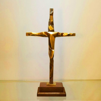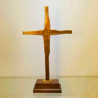 워놓을 수 있게 만든 청동 황동 탁상 십자가입니다.