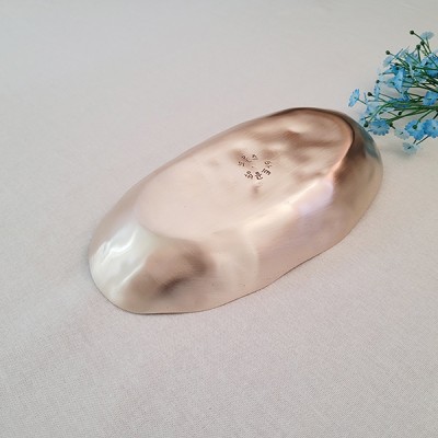 유기 방짜 타원형접시는 디자인 특허 모양을 잘 살려 디테일한 형태 자연스러운 타원 모양