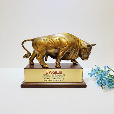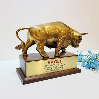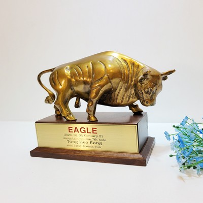 소의 역동적이고 강한 힘이 느껴져 소싸움대회때 꾸준히 찾는 청동 황동 황소상패 상품입니다.