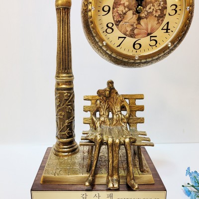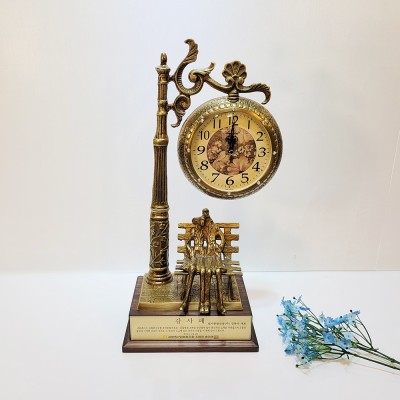 엔틱가구와 잘 어울리는 청동 황동 벤치 탁상시계는 의미 있는 문구를 넣어 기념패 우승패 감사패