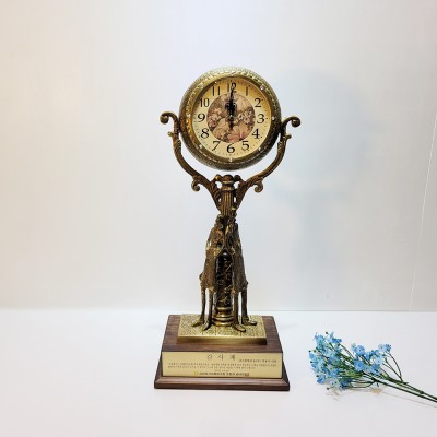 엔틱가구와 잘 어울리는 청동 황동 연인 탁상시계는 의미 있는 문구를 넣어 기념패 우승패 감사패