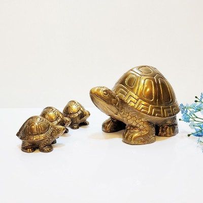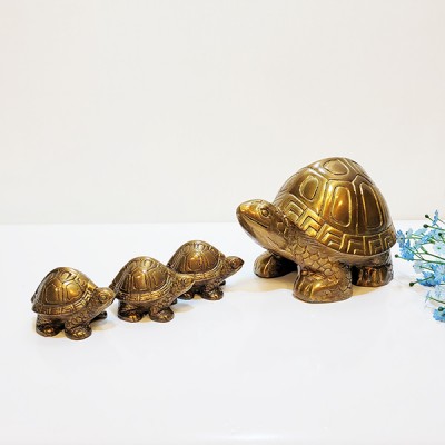 집을 지키고 무병장수를 기원하며 재물복의 상징으로 여겨지는 청동 황동 거북이 조각품, 거북이가족
