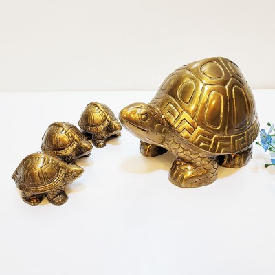 집을 지키고 무병장수를 기원하며 재물복의 상징으로 여겨지는 청동 황동 거북이 가족 조각품