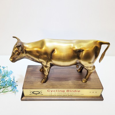 소의 역동적이고 강한 힘이 느껴져 각종 기념패, 감사패, 공로패, 우승패로 꾸준히 찾는 청동 황동 황소 상패입니다.