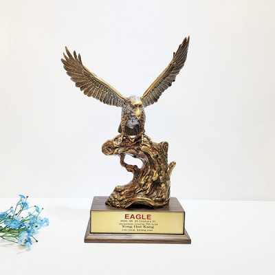 나무 가지위 독수리 조각상, 조각품은 생생한 표현과 고급스러운 원목 자대의 매치가 돋보이는 고급 이글 상패
