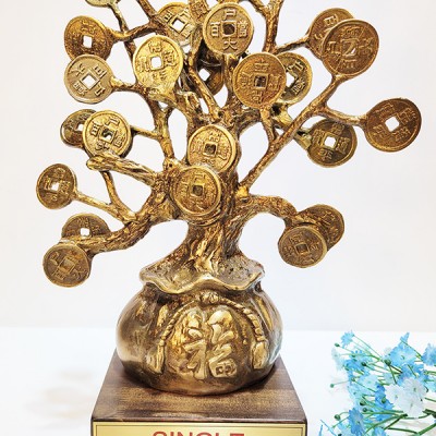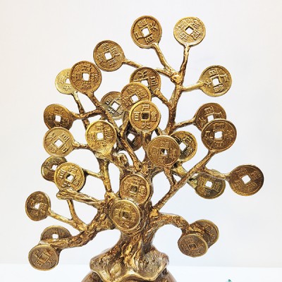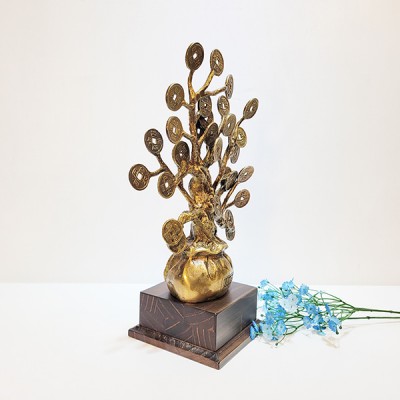 재물운을 부르는 청동 황동 공예품인 돈나무 복주머니 조각품은 복을 부르는 복주머니 위에 하나하나 수작업으로