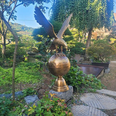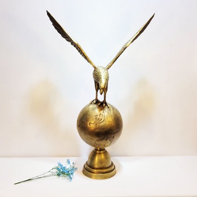 고급스럽고 변함없는 청동 황동 소재로 디테일하게 만든 지구본위 독수리 특대 조형물은