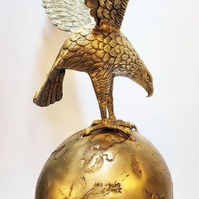 동. 브론즈 재질의 중후함과 섬세한 독수리 형상, 지구본 위에서 날개를 활짝 편 용맹스러운 독수리 조각상, 조각품~