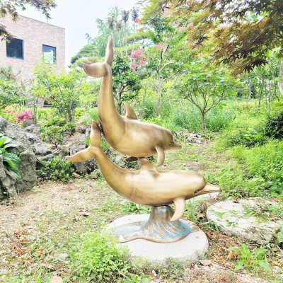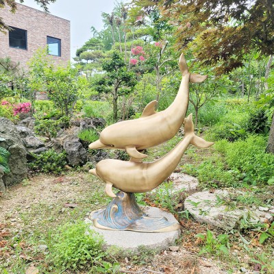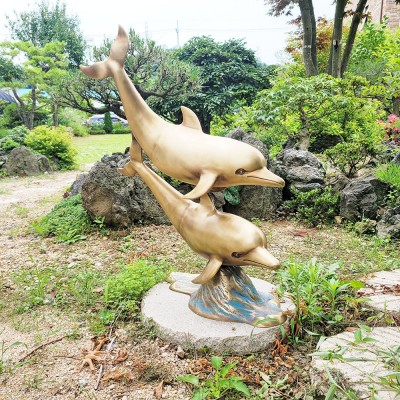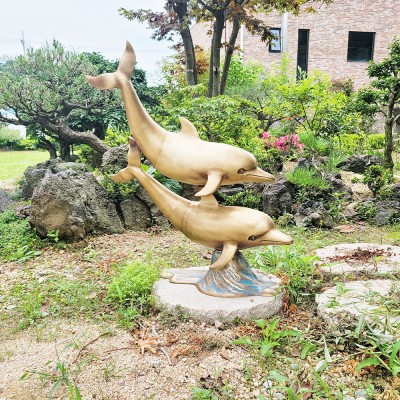 청동 공예품 파도위로 튀어 오르는 두 마리 돌고래는 가족애, 사랑이 느껴지는