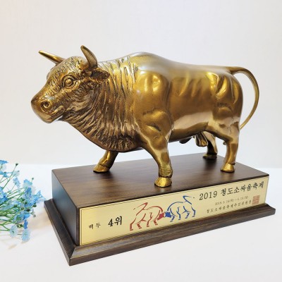 소의 역동적이고 강한 힘이 느껴져 각종 기념패, 감사패, 공로패, 우승패로 꾸준히 찾는 청동 황동 황소 상패입니다.