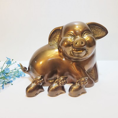웃는 복돼지 가족 대 앙증맞은 미니돼지 돼지 대 조각품, 조각상은 청동 황동 좋은 재료사용