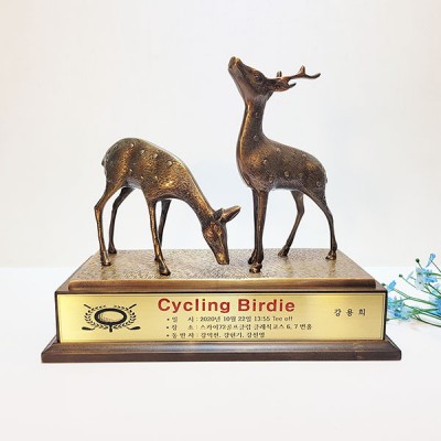 사슴은 건강. 명예. 장수. 영광. 재물. 권세등을 상징하여 청동 황동 공예품으로 사슴 소 한 쌍 조각품 상패