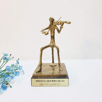 청동 소재로 고급스러운 이미지의 음악 악기 상패입니다.