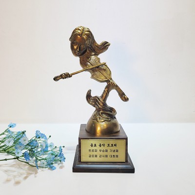 황동 청동 소재로 고급스러운 이미지의 바이올린, 플룻 연주 악기 상패입니다.