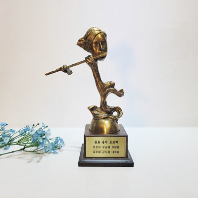 황동 청동 소재로 고급스러운 이미지의 플룻 연주 악기 상패입니다.